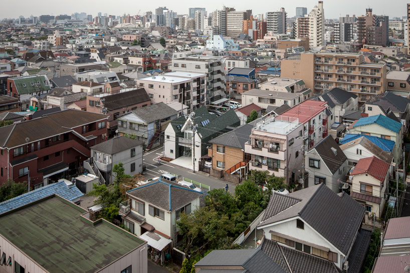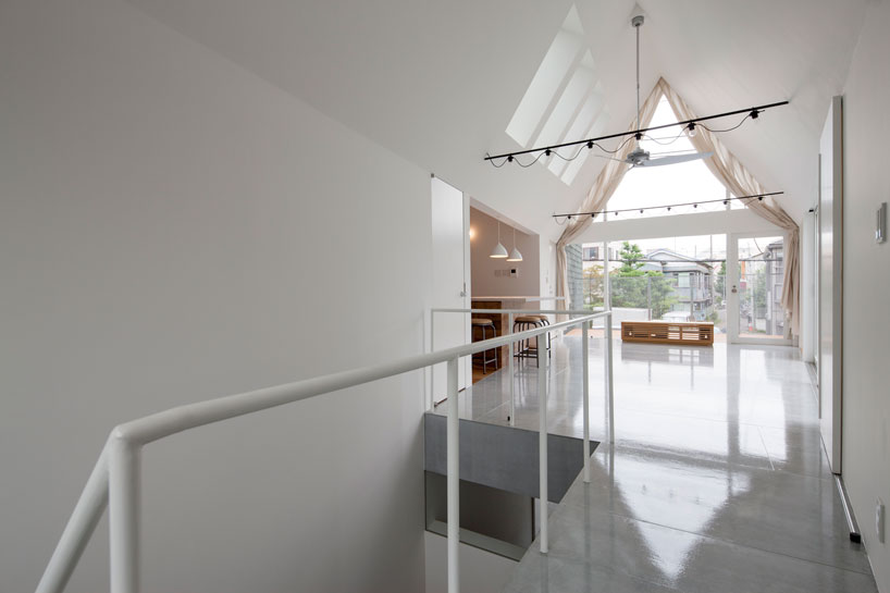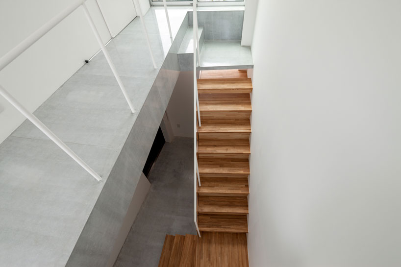 項目位于東京一處不規(guī)則的住宅區(qū)內,starpilots事務所設計的這處“housecut”,是一棟帶有他們個人辦公空間的家庭住宅。地塊位于街角的位置,不規(guī)則的形式拆分成了三個高大的結構,其中中間的體塊與兩側相比后退了一部分,形成了一處受庇護的門廊。將這棟建筑拆分成三個體塊是因為該地塊正處于城市道路建設規(guī)劃之中。因此,如果該規(guī)劃通過,其中一個體塊就會被拆掉。這三個體塊每個都有自己獨立的入口,同時結合整體規(guī)劃,該住宅也提供了該家庭殯葬公司的空間。