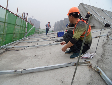 安裝豎龍骨時必須拉線將屋面調(diào)平: