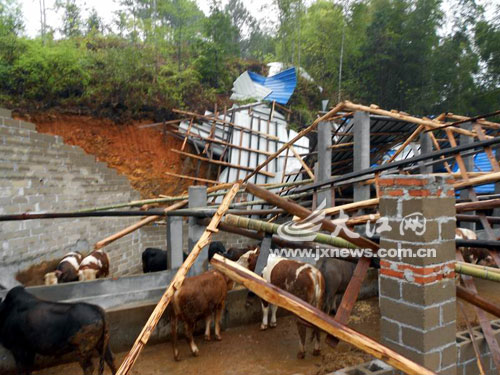 幾乎家家戶戶都積滿了水,一些村民在用水桶盛水往外倒。而且,整個(gè)村莊的每一條巷道里,都鋪滿了破碎的瓦片,一片狼藉,滿目瓦礫。