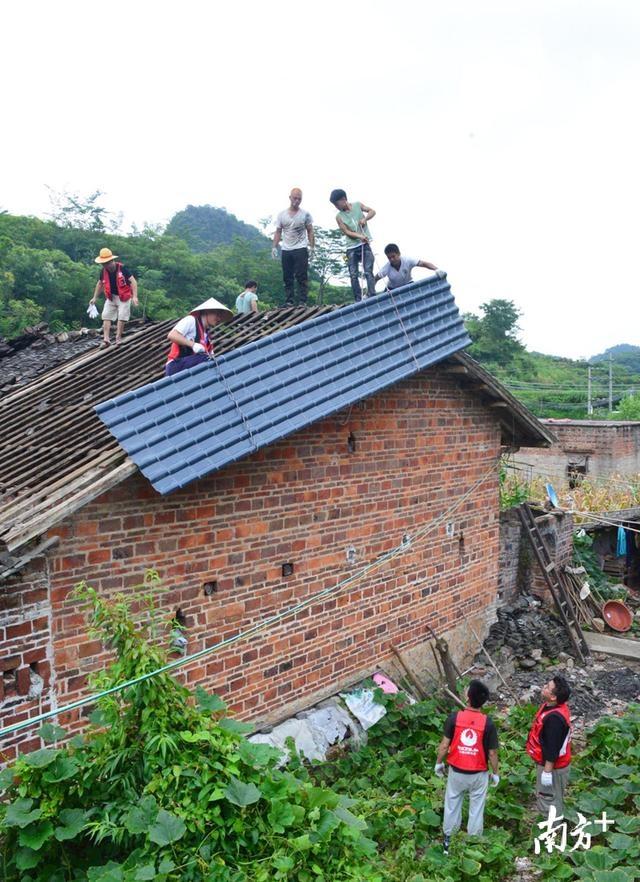 果不其然。13日上午,雷陣雨說來就來。聽著雨水落在屋頂?shù)穆曇?,再無漏水之憂,鄧龍二妹難得露出了笑容。“多得這些阿貴、阿妹(年輕男孩、年輕女孩之意)的幫忙,我家不用再怕落雨天漏水,能睡個(gè)安穩(wěn)覺了。”她用客家話夾著瑤語說。