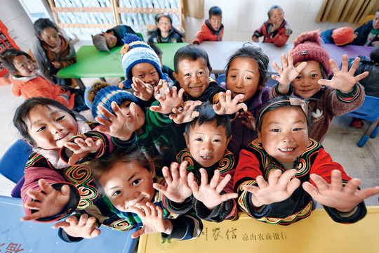 增強(qiáng)健康意識,養(yǎng)成良好衛(wèi)生習(xí)慣,要從娃娃抓起。圖為涼山州昭覺縣四開鄉(xiāng)灑瓦洛且博村幼教點(diǎn),小朋友們展示自己干凈的小手。 楊樹/攝