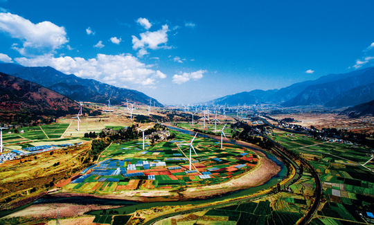 涼山州光能、風(fēng)能等資源豐富,風(fēng)電等產(chǎn)業(yè)變“動能”,幫助群眾脫貧增收。圖為涼山州德昌縣安寧河峽谷的風(fēng)電基地。 冷文浩/攝
