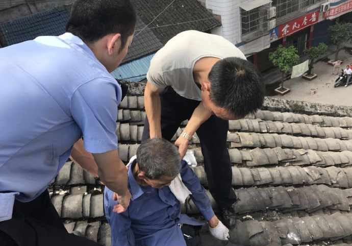 近日,渠縣公安巖峰派出所接到轄區(qū)群眾報(bào)警稱:在巖峰鎮(zhèn)文化街的78歲老人劉某在自家房頂蓋樹脂瓦中暑昏迷了。