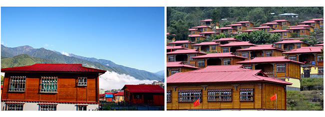 合成樹脂瓦在西藏適用面廣泛:農(nóng)村自建別墅屋面、平改坡、舊房翻新、新農(nóng)村建設(shè)、樓頂花園、小區(qū)、窯洞屋頂改造、亭臺(tái)樓榭、城區(qū)改造等。