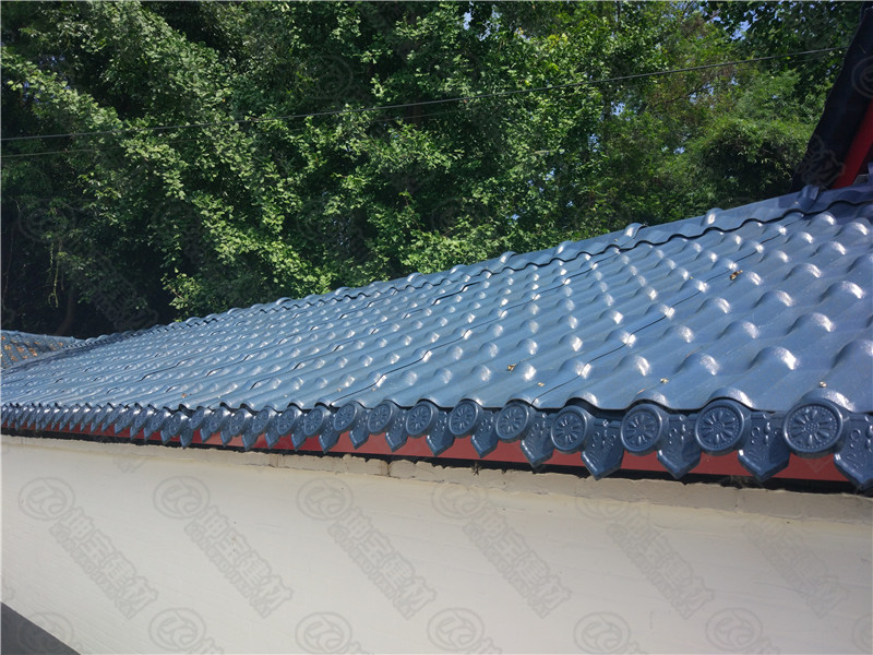 新型環(huán)保合成樹脂瓦具有顏色持久、質(zhì)輕、自防水、堅韌、保溫隔熱、隔音、耐腐蝕、抗風(fēng)防震、抗冰雹、抗污、綠色環(huán)保、防火、絕緣、安裝方便等優(yōu)點,而且造型美觀立體感強,顏色極具中國元素,使得它被廣泛應(yīng)用于各類**建筑屋面裝飾,尤其目前國內(nèi)大力推廣的“平改坡”工程;也充分響應(yīng)了國家的環(huán)保低碳政策和建立節(jié)約型社會的號召。